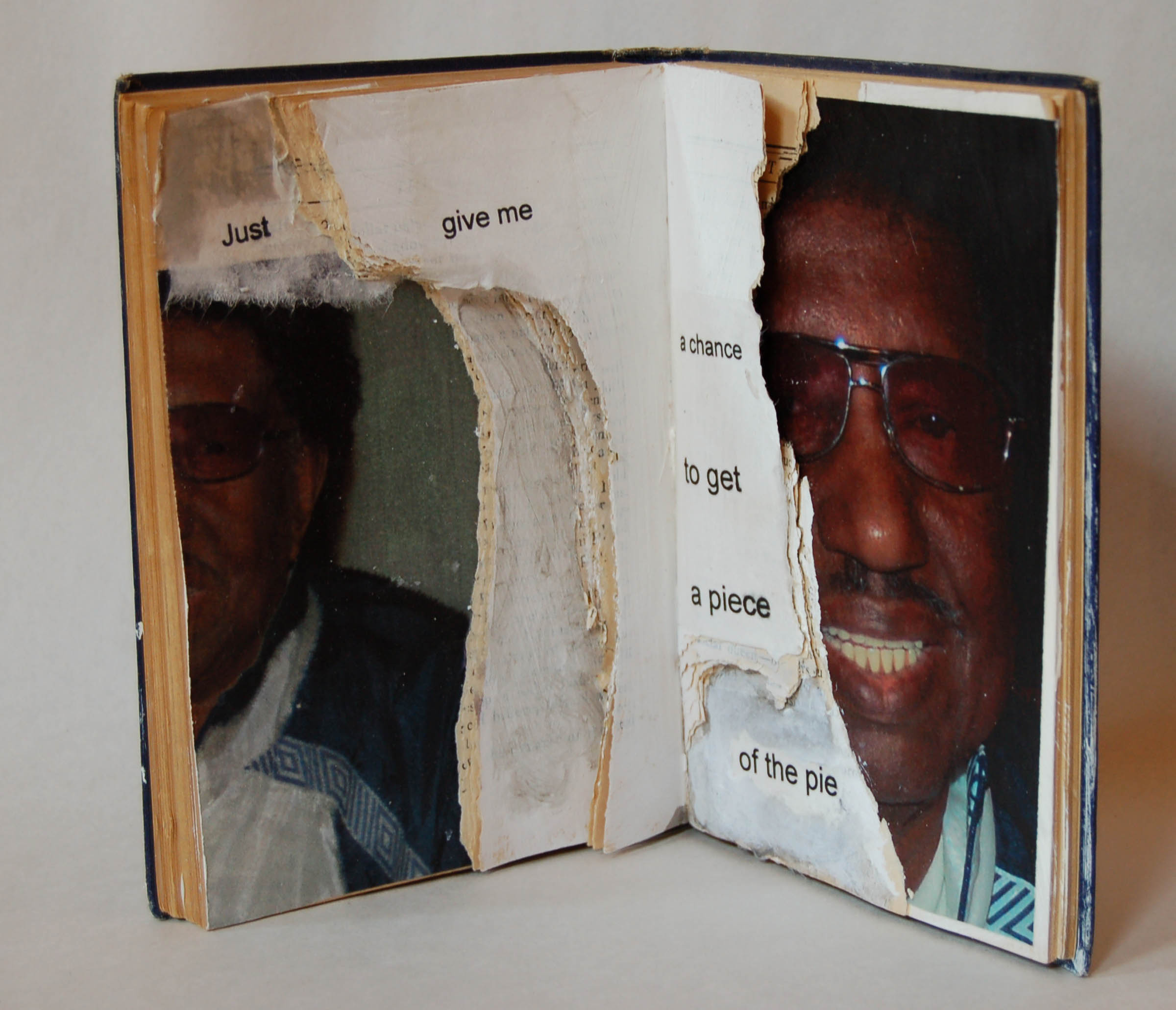 | Aileen Bassis "Jamaica Flux: Workspace and Windows 2007" These altered books were created for a public art project that sought to bring art out of a gallery space and into the community. For my project, I met with older community residents in their homes, talking with them about their lives, photographing them and using their words and images to make a group of altered books. The altered books were displayed in a local bookstore. |