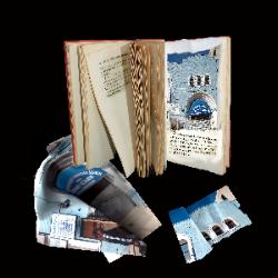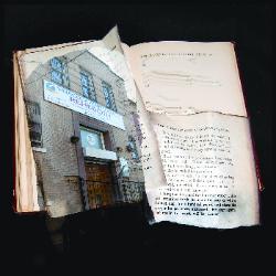 | "Migration Stories: Silent Witnesses - Synagogues Transformed, Rebuilt or Left Behind" was a group exhibition at the Holocaust Center of Detroit Artists created work specifically for this exhibition: I'm tentatively calling this group of work "Stories End" -- a group of photos that create virtual altered books For a long time I’ve wanted to make some art about the lost world of my childhood in the South Bronx in the 1950’s. As time goes on, the world I grew up in becomes more and more remote. On one of my bookshelves is an old book, “Jewish Fairy Tales and Legends.” It was awarded from our Temple Sisterhood to my older brother. I discovered it when emptying my parents’ apartment. We owned very few books (I went to the library a lot) and I read this book over and over. This relic of my childhood has become the heart of this project. I’ve made a group of photos of this book that are virtually altered books. I took a drive one Sunday, photographing former Bronx synagogues. They are scattered all over, near Yankee Stadium, in my old neighborhood of Highbridge, along the Grand Concourse (which my mother called “the Park Avenue of the Bronx). They are now transformed into churches, community centers, or abandoned, left behind as the community changed. Each photograph incorporates a synagogue photo and each photo contains pieces of a fairy tale text from that book showing the end of the stories, all fragments of a lost world. |